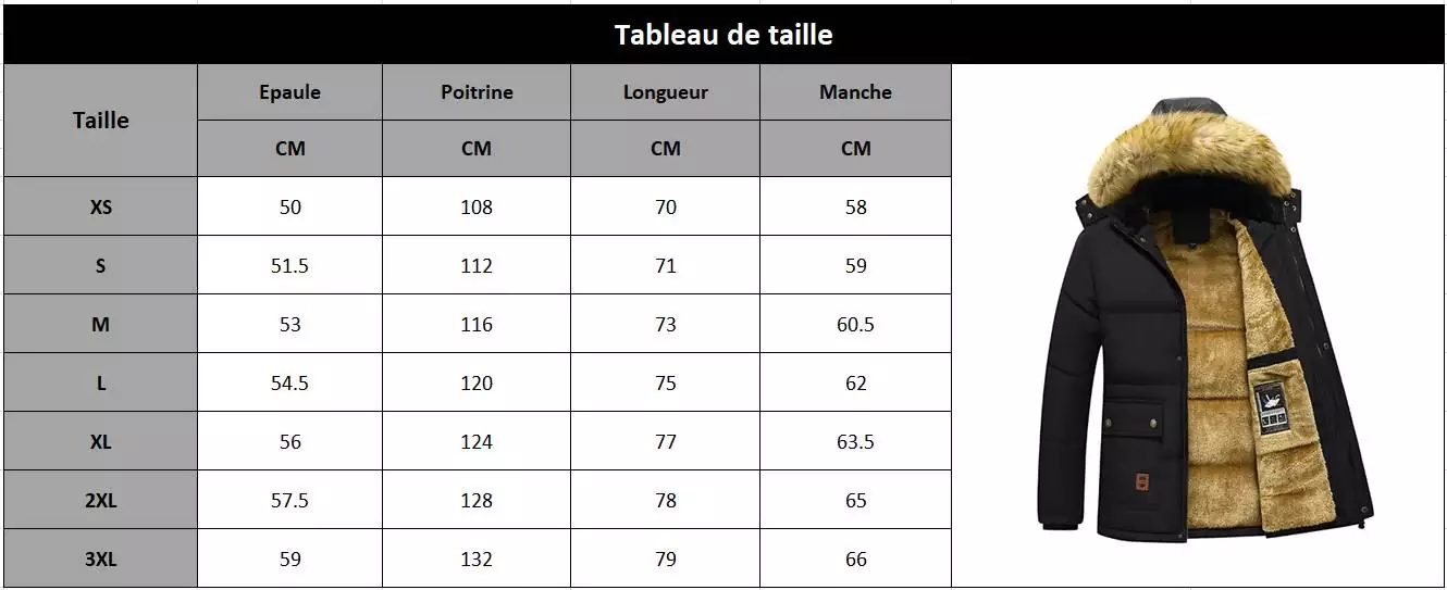 • Il est important de consulter le tableau des tailles afin de choisir celle qui vous convient.